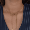 Add a sweet and sophisticated touch to your style with the Ribbon Bow Necklace. Featuring a charming ribbon bow design, this necklace is plated in luxurious 18K gold, making it an elegant statement piece that effortlessly complements any outfit.