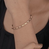 Add a touch of ancient elegance to your accessory collection with the Roman Tale Bracelet. Crafted from high-quality 316L Stainless Steel and plated with luxurious 18k Gold, this bracelet features a timeless oval shape with a classic design that speaks of sophistication and style.